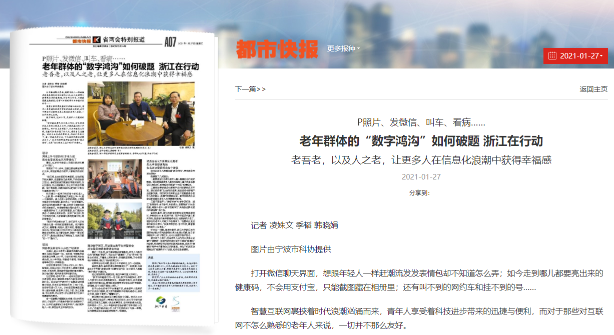 三是开展老年人“数智共享”科普专项行动。建立“政府倡导、多方参与、科协牵头、志愿服务”的长效机制,将提升老年人数字技能作为“具有浙江辨识度的科普品牌”来打造。