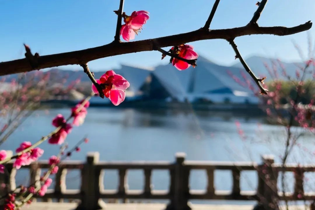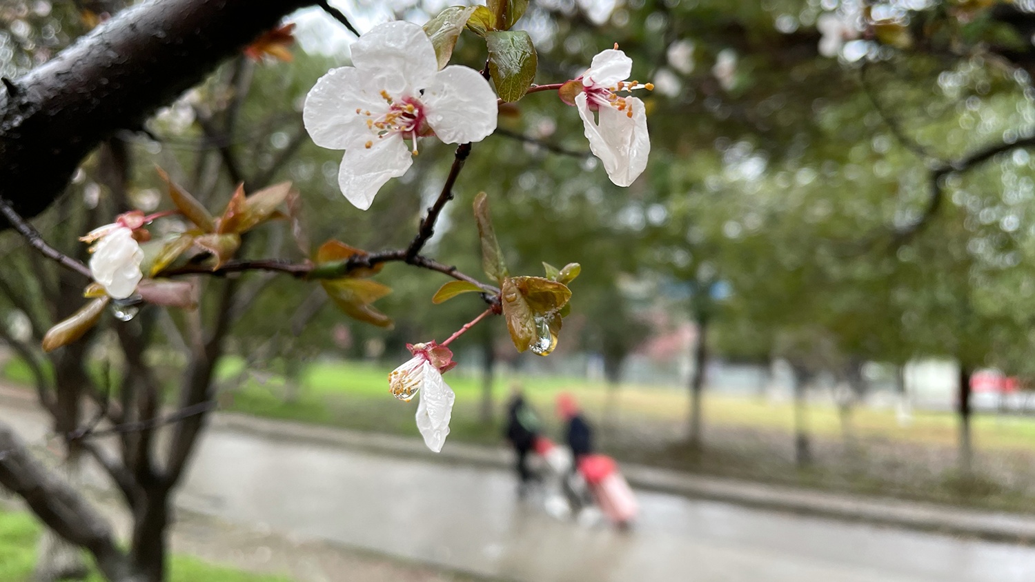 赏春正当时,浙江科技学院里的梅花、桃花等竞相绽放。