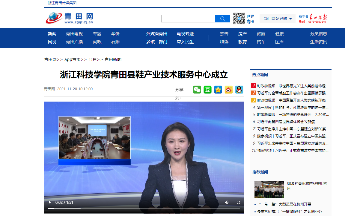 点击观看视频:浙江科技学院青田县鞋产业技术服务中心成立