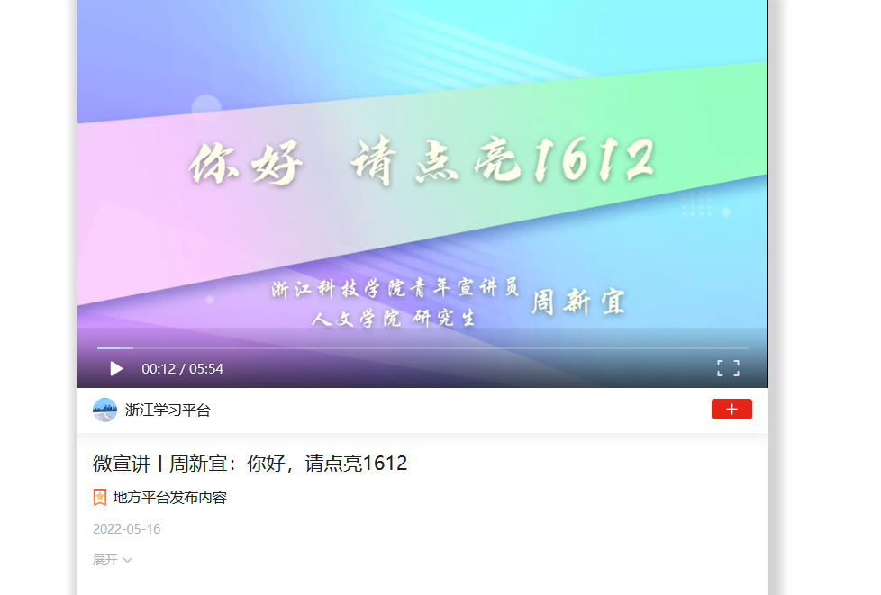 视频链接:微宣讲丨周新宜:你好,请点亮1612