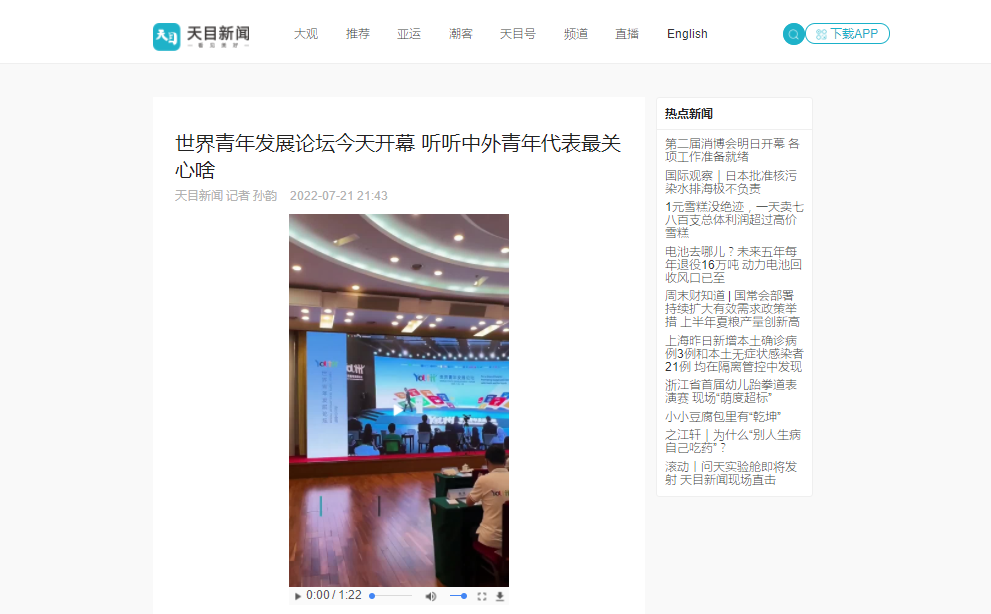 天目新闻客户端:世界青年发展论坛今天开幕 听听中外青年代表最关心啥