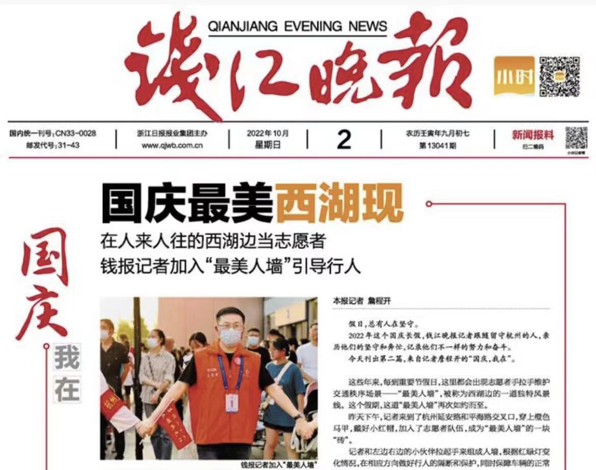 国庆假期,杭州市上城区湖滨步行街路口的“最美人墙”如约而至。我校连续四年组织志愿者参与其中,为湖滨的交通安全提供志愿服务,构成了一道手拉手组成的风景线。活动受到浙江新闻、浙江经视、新民晚报、钱江晚报、都市快报、北京青年报、杭州日报、杭州发布、杭州公安、杭州交警、杭州网、天目新闻、上城发布、青春杭州等媒体的关注和报道。其中来自理学院应用统计专业的留学生志愿者阿奇接受浙江新闻与上城发布采访。