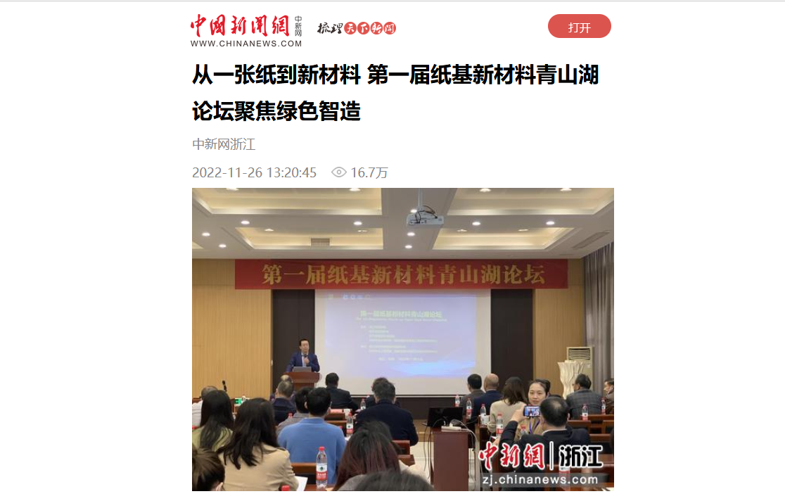 原文链接:中国新闻网:从一张纸到新材料 第一届纸基新材料青山湖论坛聚焦绿色智造