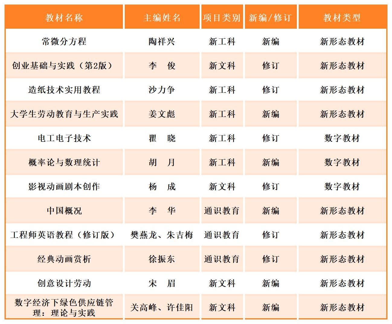 浙江省普通本科高校“十四五”“四新”重点教材建设项目是推动“四新”建设,创新多学科交叉的人才培养,构建具有浙江特色的人才培养体系,实现浙江省高等教育高质量高水平发展的重要举措。教材建设是课程建设和教学改革的重要组成部分,是深化教学改革、提高教学质量的重要保证,学校将借此契机,紧紧围绕立德树人根本任务,持续培育更多精品化教材。(教务处 陈洁琼)