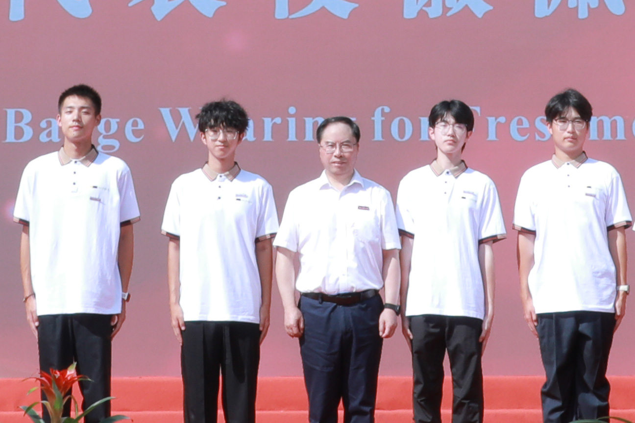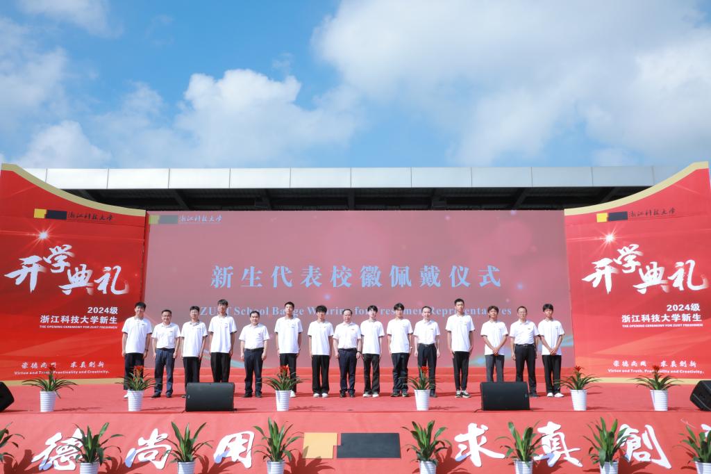 出席典礼的校党政班子成员为新生代表戴上“爱体育网页版,爱体育(中国)官方在线登录”校徽,全体新生起立自行将校徽佩戴于胸前,这一刻他们正式成为浙科大人,着笔谱写属于自己的青春篇章。