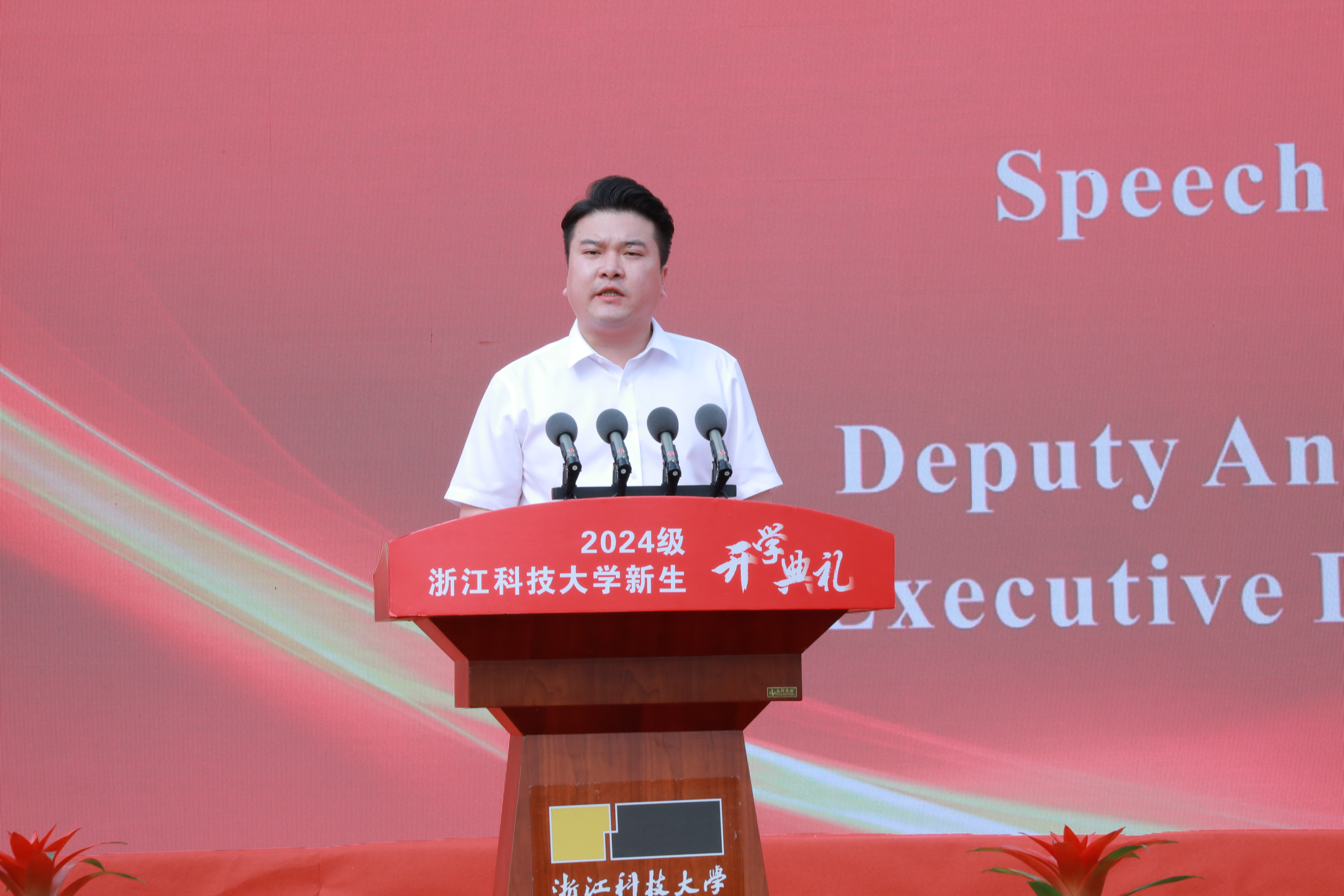 陈建孟代表学校对全体新同学加入浙科大表示热烈欢迎。他以《知重负重 唯实唯新》为题致辞。陈建孟指出,当今时代,和平与发展仍是主旋律,但随着新一轮科技革命和产业变革的深入发展,世界政治、经济、科技格局加速重构,时代大潮奔竞不息,不断校正着每个人的方位坐标。