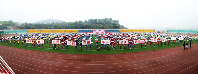 “富强、民主、文明、和谐、自由、平等、公正、法治、爱国、敬业、诚信、友善”,挑战开始前,全场师生一齐喊出以青春践行社会主义核心价值观的心声。