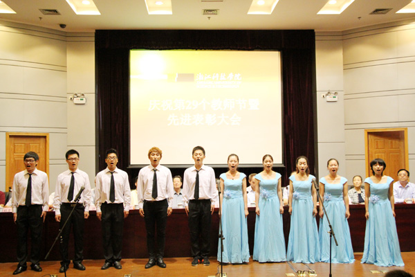 学生合唱队以悠扬的歌声为亲爱老师们送上节日祝福。