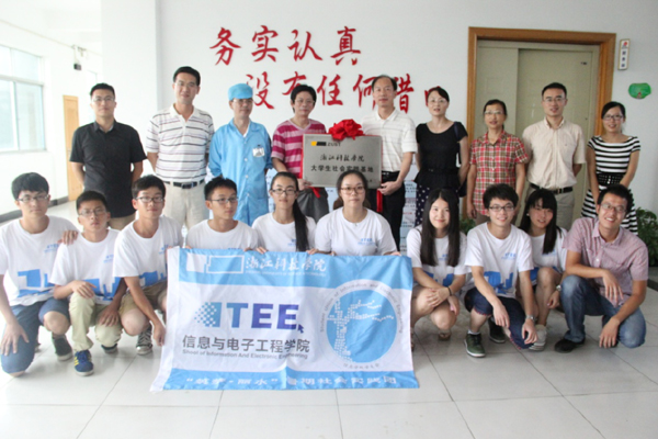 7月19日,校党委副书记周加敏在校团委、学生处及信息学院等单位负责人陪同下赴丽水,看望了在浙江俊达仪表有限公司参加2013年大学生暑期社会实践的师生。共青团丽水市委副书记王井泉,浙江俊达仪表有限公司董事长舒敏钦、副总经理林文远等热情欢迎了周加敏一行。