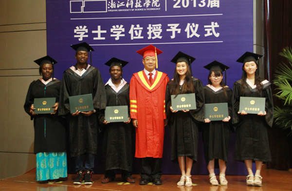 学校首个全英文授课国际班经管国贸班毕业,4名留学生取得学位。