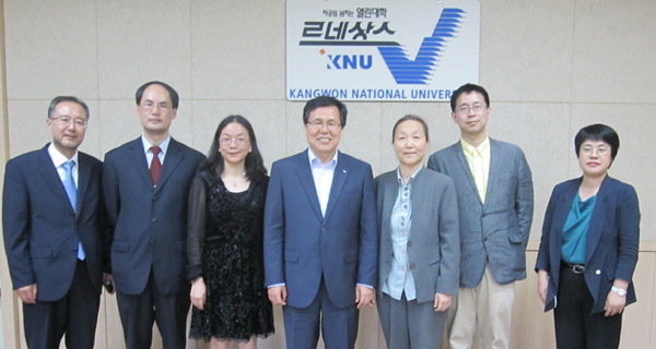 在韩国江原大学访问期间,江原大学校长辛承昊博士热情欢迎了鲁凤一行。代表团先后考察了该校山林环境科学学院、信息技术学院和人文学院。两校就学生交换、学分互认、学生夏令营、教师互访、特色专业建设等展开深入交流,为今后展开合作打下基础。