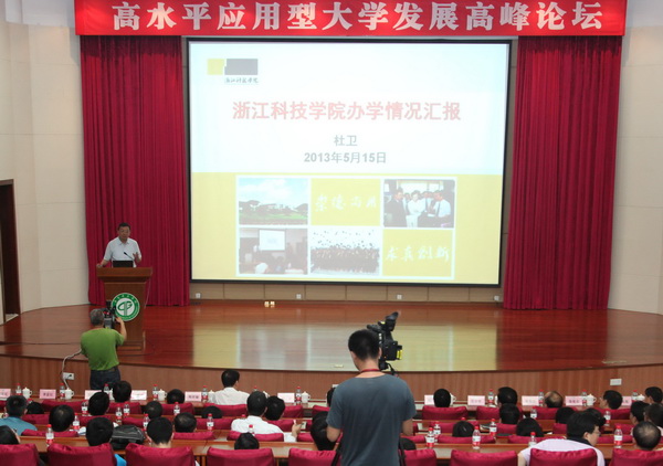 杜卫在会上作了专题发言。他从学校概况、发展目标定位和主要举措、近期正在开展的几项工作等方面,介绍了我校的办学经验,对高水平应用型大学建设提出了建议。发言得到与会领导和专家的高度赞同。