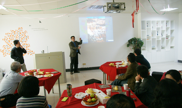 茶话会上,留联会会员、经管学院曹旭华教授介绍了自驾环绕美国之旅,通过美轮美奂的照片描绘了壮绝多姿的北美洲自然风貌。 他还结合自己的美国学习生活感受,畅谈了对美国梦和中国梦的理解。机械学院唐智宏副教授生动叙述了自己的北极之行,为与会者展示了一幅人迹罕至但奇趣横生的地球之极画卷。