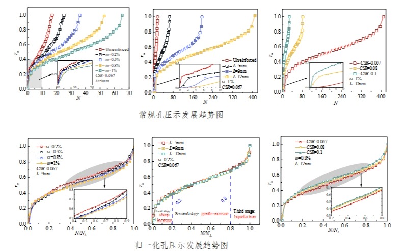 在《Acta Geotechnica》上发表的“Liquefaction behavior of fiber-reinforced calcareous sand under cyclic simple shear tests”(点击阅读),孔勃文博士为论文第一作者,硕士生何欢为第二作者,邹宝平教授为论文通讯作者,爱体育网页版,爱体育(中国)官方在线登录为第一单位。该研究采用单向不排水循环单剪试验模拟地震荷载下钙质砂的水平剪切应力状态,该方法相比传统三轴试验更精确地反映地震时土层内部的剪切行为。研究系统分析了纤维掺量、纤维长度和循环应力比三个变量对纤维增强钙质砂的液化阻力、刚度退化及孔隙水压力发展的影响。基于试验数据,研究首次建立了一个孔隙水压力预测模型,综合考虑纤维掺量和循环应力比的影响,该模型能有效预测不同工程工况下纤维增强钙质砂的孔压演变规律。论文成果不仅深化了对纤维增强钙质砂动力行为的科学认识,成果可直接应用于我国海岛礁石填筑工程的抗震设计与灾害防控,具有重大的工程应用价值。
