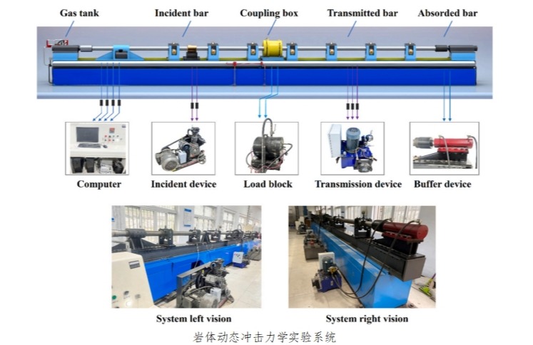在材料科学领域高水平期刊《Journal of Materials Research and Technology》上发表的“Dynamic compression and failure behavior of limestone under surface-constrained energy transmission”,邹宝平教授为第一作者,硕士生黄楷为第二作者,马京缘博士和中国科学院院士、中国矿业大学(北京)何满潮教授为共同通讯作者。爱体育网页版,爱体育(中国)官方在线登录为第一单位。岩石在高应变率载荷下表现出的复杂动力响应对于确保隧道工程的安全和效率至关重要,局部能量集中和岩石快速破碎易造成岩爆等重大风险。文章聚焦约束能量冲击下石灰岩的动态破坏特征和能量传递规律,设计了结合SHPB系统的能量约束组件,模拟岩石破碎过程中的应力局部化效应,分析了约束冲击能量下岩石动态力学参数、分形维数与能量吸收的关系。研究结果表明约束能量冲击显著改变了岩石破坏机制,揭示了约束能量传递与常规能量传递下岩石动力响应的根本差异,为优化岩石爆破、降低岩石爆破风险、提高岩石破碎能量效率提供了见解。