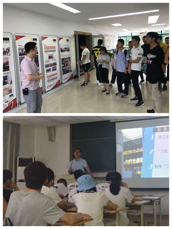 两校师生先后参观了中德友谊园、中德工程师学院等校内文化和教学场所。招就处老师向到访的师生介绍我校基本概况,对高考政策、三位一体招生、我校特色专业和中德项目作了深入浅出的讲解,并与现场同学进行互动。