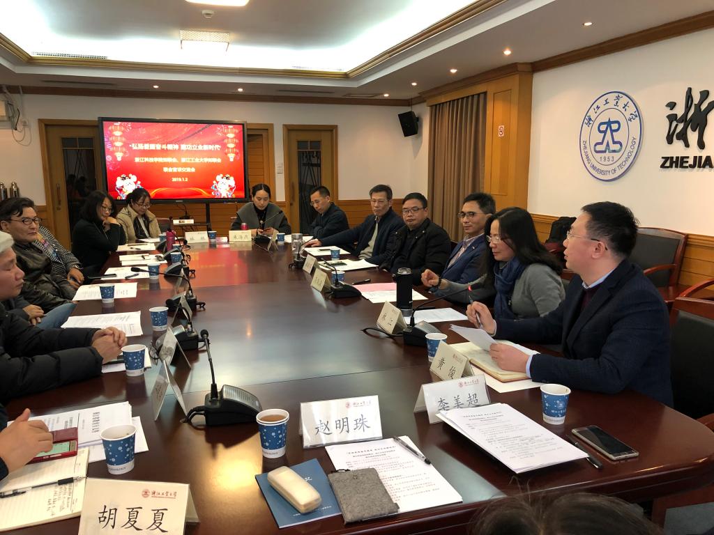 1月2日,浙江工业大学.浙江科技学院党外知识分子“弘扬爱国奋斗精神、建功立业新时代”主题宣讲会在浙江工业大学举行,省知联会常务理事、我校知联会会长林江教授;省知联会理事、我校知联会副会长黄俊教授参加此次宣讲活动。