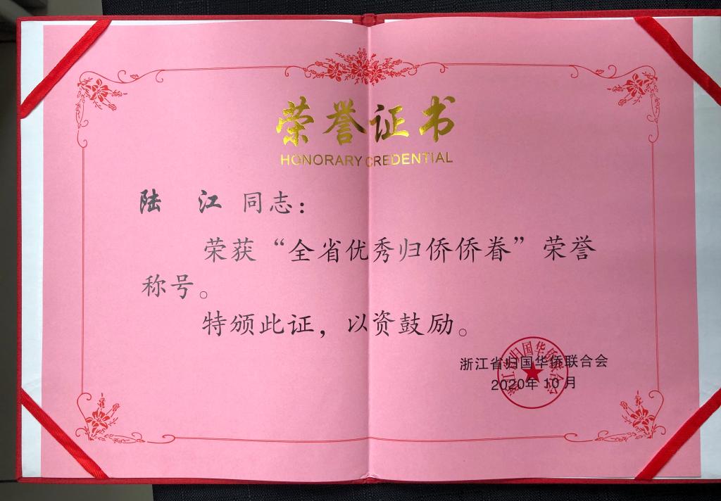近日,浙江省第十次归侨侨眷代表大会在杭州召开,会议对全省侨界“十杰”及提名奖、先进集体、先进工作者和优秀归侨侨眷进行了表彰。我校留联会副会长陆江博士荣获“全省优秀归侨侨眷”荣誉称号。