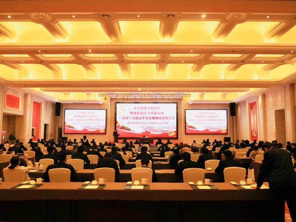 11月25日,我校十九届五中全会精神宣讲团成员、马克思主义学院院长刘宗让教授应邀赴慈溪市金融业协会宣讲党的十九届五中全会精神,慈溪市金融业协会各会员单位主要负责人、中层干部代表等近200人参加了宣讲报告会。