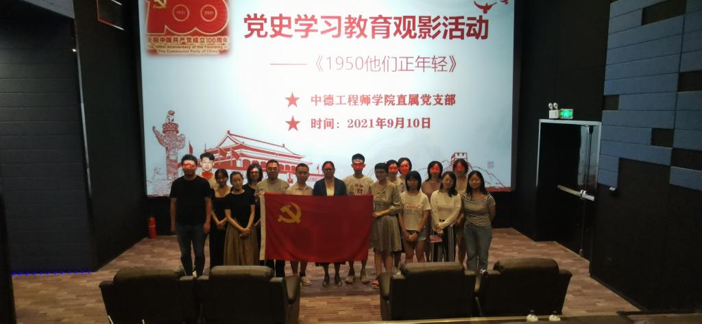 9月10日,中德工程师学院直属党支部开展党史学习教育,组织全体教职工党员集中观看电影《1950他们正年轻》。