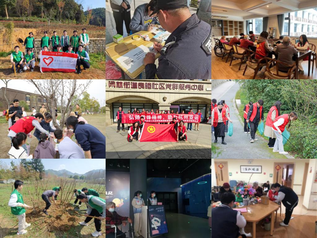 大学生志愿者团队纷纷走出校园,用实际行动服务社会。电气学院志愿者在中国动漫博物馆负责AR体验帮助及引导游客等工作;建工学院与电气学院志愿者前往2家养老院,进行爱心陪伴志愿活动,为老人带去了欢声笑语;环资学院志愿者开展了“学雷峰——藏在明信片里的希望”主题志愿活动,寄语信笺卡片,寄情留守儿童;理学院志愿者携手小和山社区在小和山新苑公园开展了植树活动,并推广支付宝“浙江科技学院公益林”项目;继教学院组织了“弘扬雷锋精神 守护青山喜迎亚运”志愿活动,植树浇水除杂草,清洁扫净游步道,为美丽杭州建设、“迎亚运”城市环境整治贡献志愿力量;国际学院组织来华留学生参与到志愿活动中,致力于幼儿园社区支教、景区秩序维护,为中外交流搭建了爱心桥梁。(团委  学生记者 何沛艺)