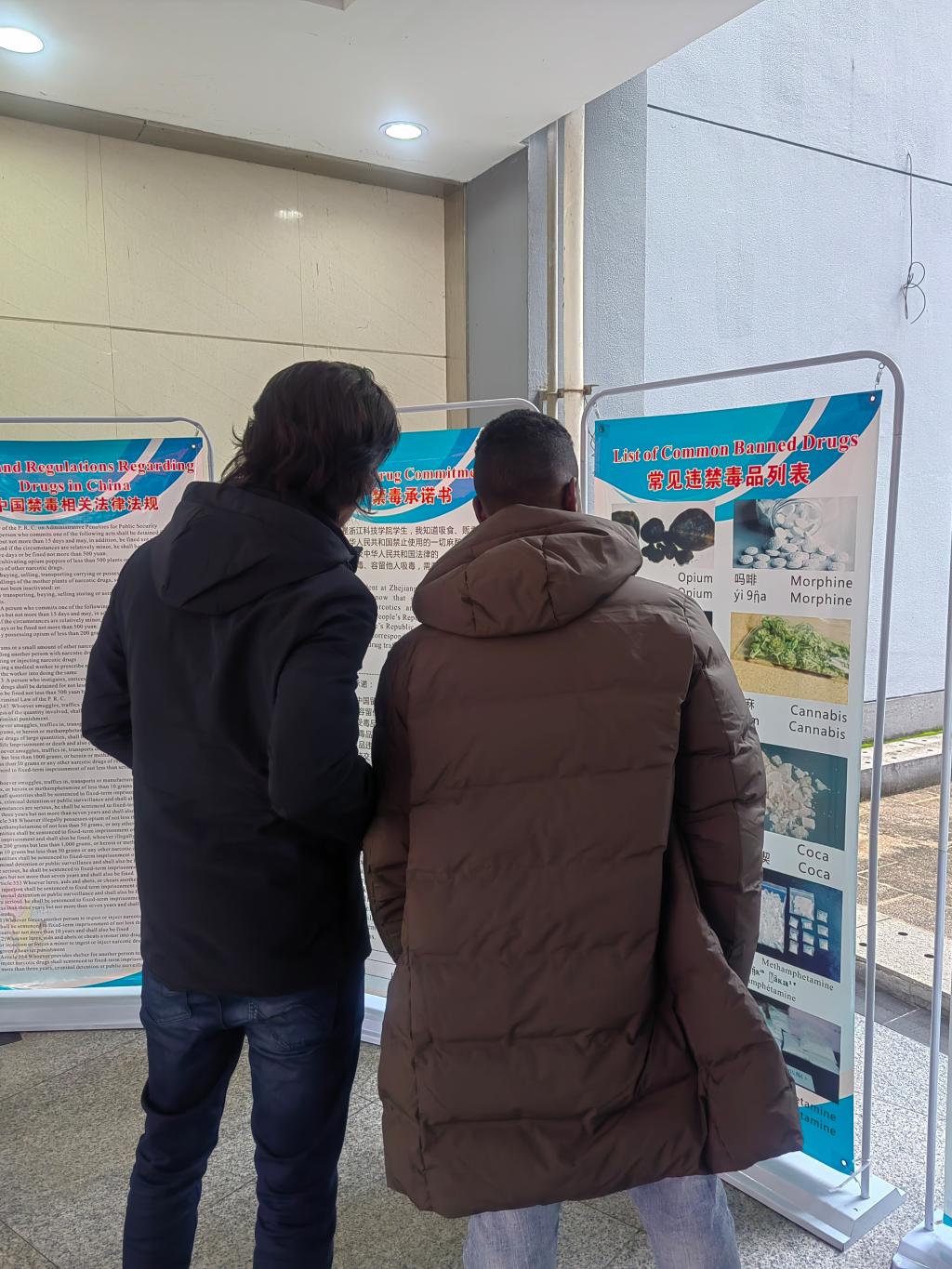 课前,举行了“留学生禁毒宣传员”的聘任仪式和“校外法制辅导员”聘任仪式。课程技术后,留学生参观了会场外的禁毒教育展。