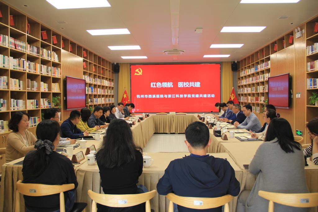 4月21日,我校后勤服务中心综合党支部、外国语学院教工第四党支部与与杭州市西溪医院行政第一党支部签署了党建共建协议书。校党委委员、副校长陈平,杭州市西溪医院党委书记张祖勇,党委委员、纪委书记汪皓秋等出席,后勤服务中心、外国语学院党政负责人、支部教师代表等参加签约仪式 。
