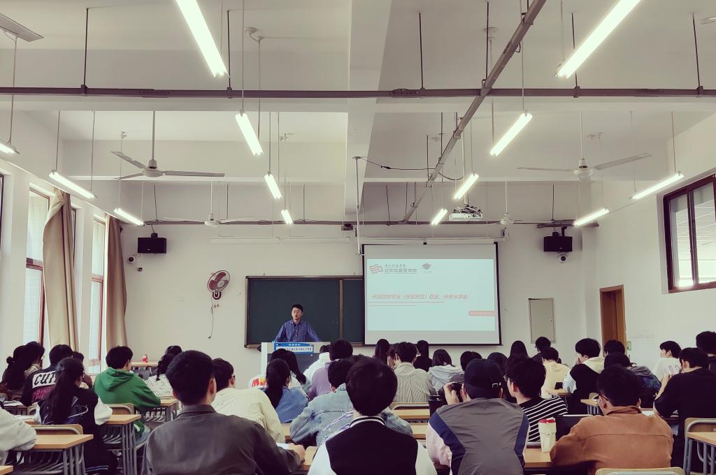 据悉,经管学院在本学期针对大二大三学生已组织升学交流会10余场,考研、出国(境)留学、考公考编、就业等方向的学长学姐传授相关经验,提升升学服务的针对性和实效性。