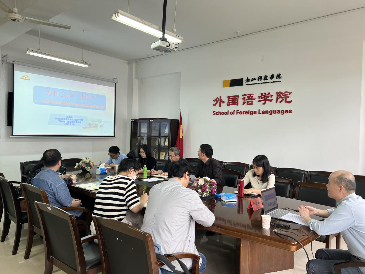 5月19日,外国语学院举办学习贯彻习近平新时代中国特色社会主义思想主题教育专题读书会,省委党史和文献研究室宣教处二级调研员邢恒超作题为《为什么是“浙江”——习近平新时代中国特色社会主义思想的萌发与实践》的专题宣讲。学院党政领导班子、主题教育领导小组成员、各党支部书记参加本次读书会。