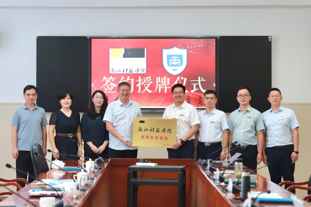 9月13日,我校与杭州市富阳区江南中学签署优质生源基地建设协议并授牌。招就处、电气学院相关负责人与江南中校领导参加活动。