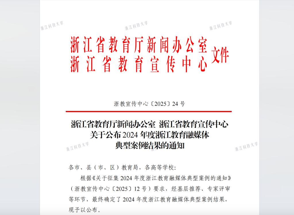 近日,浙江省教育厅办公室、浙江省教育宣传中心公布2024年度浙江教育融媒体典型案例,我校申报的《“选浙科大 一起向未来”:立德树人,讲好科大特色故事》入选。